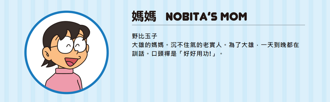 - 配音員 日本:大山のぶ代→水田山葵;台灣:陳美貞;香港:林保全→黃昕瑜